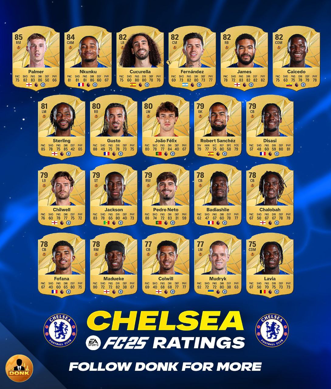 کارت های بازیکنان چلسی در اف سی 25 (FC 25) ( فیفا 25)