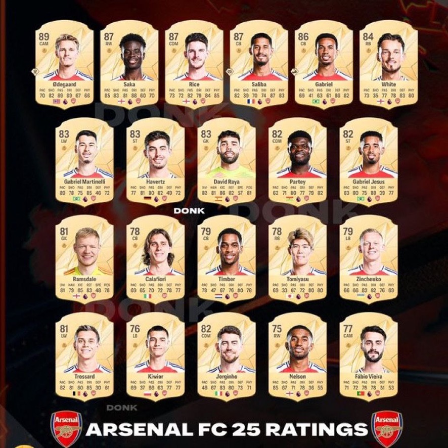 کارت های بازیکنان آرسنال در اف سی 25 (FC 25) ( فیفا 25)